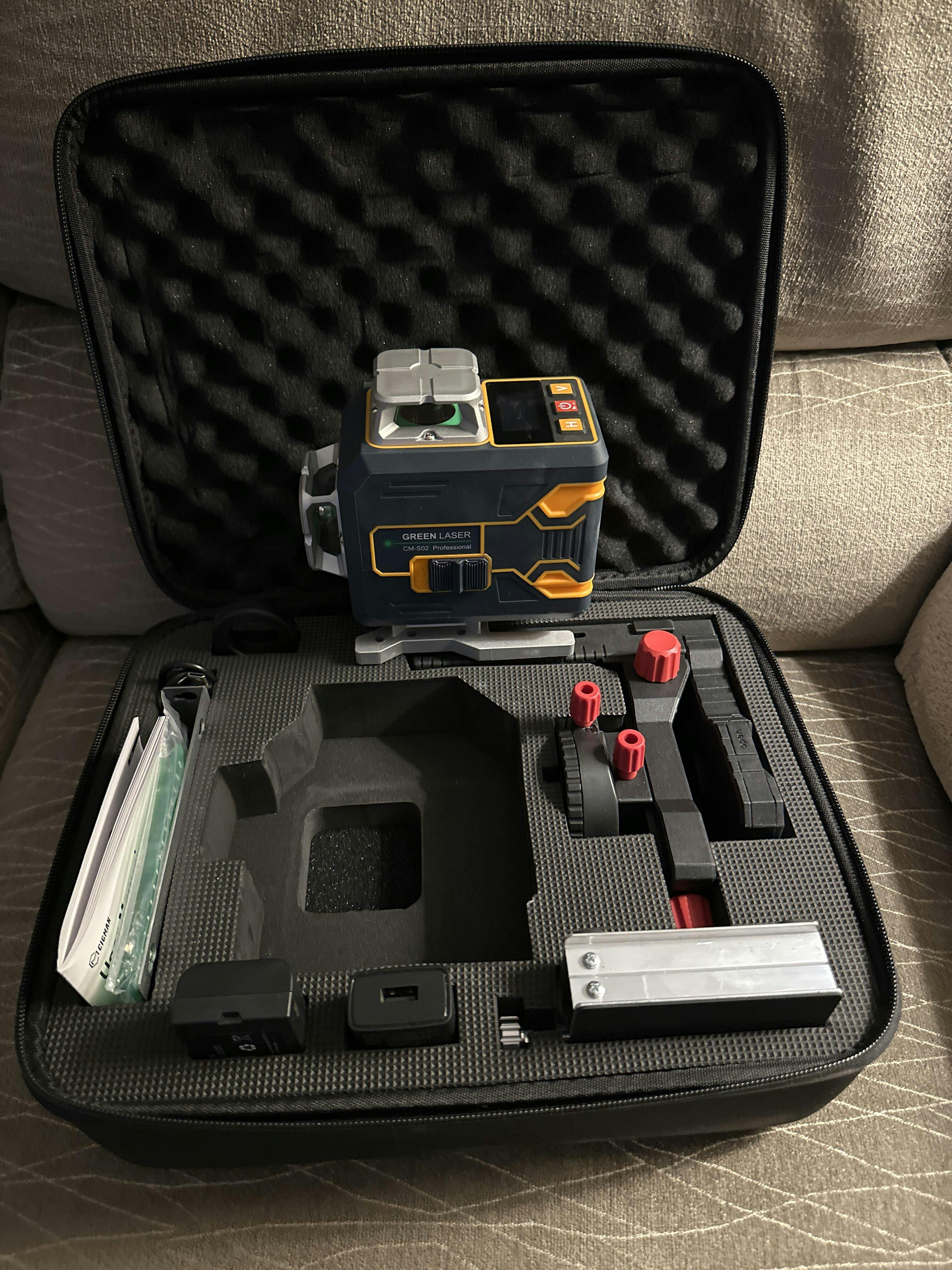 Comprehensive Accessory Kit: This laser level comes with an extensive set of accessories for enhanced functionality. Included are two chargeable lithium batteries, a charging cable (without plug), a multi-functional magnetic mount (with metal plates), a lifting base, a target plate, and a remote control. This complete accessory kit ensures you have everything needed for optimal performance in various work environments, all conveniently stored in a portable hard case.